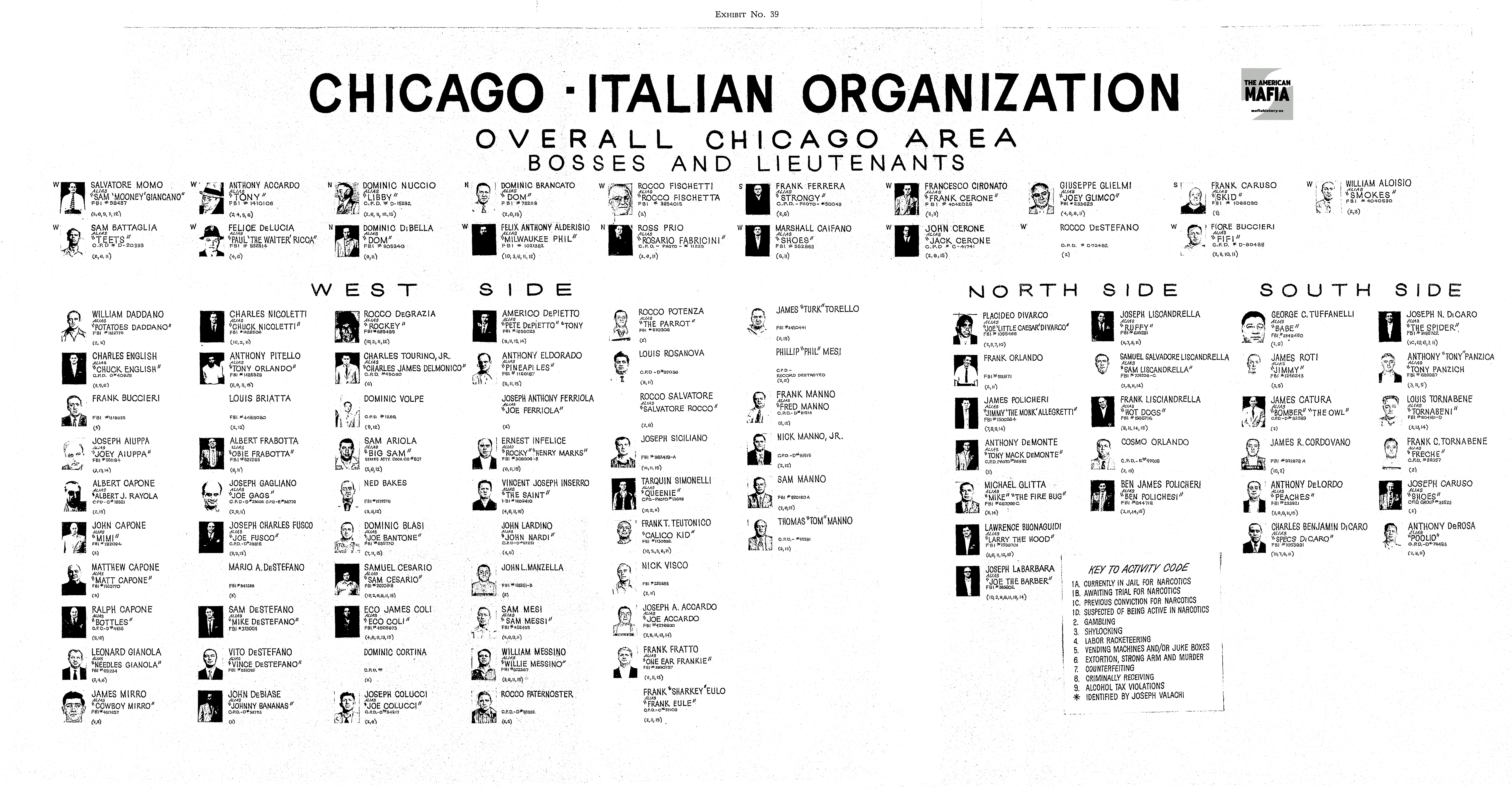 1966 - Outfit operations continued to be managed behind the scenes by its leadership committee. Sources in this period pointed to Phil Alderisio, Jack Cerone and Fiore "Fifi" Buccieri as possibly occupying the acting boss position.